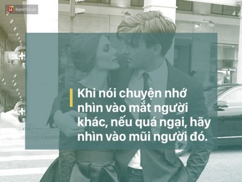Đôi mắt là cửa sổ tâm hồn, vậy nên có đôi khi, con người ta chỉ cần giao tiếp qua ánh mắt. Nhìn thẳng vào mắt người khác khi nói chuyện thể hiện rằng bạn đang tập trung và tôn trọng cuộc trò chuyện. Tuy nhiên, không phải ai cũng có thể làm được điều này, và cũng không phải tất cả mọi người đều có thể thoải mái khi bị một người khác nhìn chằm chằm, những lúc như vậy, bạn có thể chọn cách tập trung điểm nhìn vào một bộ phận khác trên khuôn mặt người nghe, tiêu biểu như mũi.