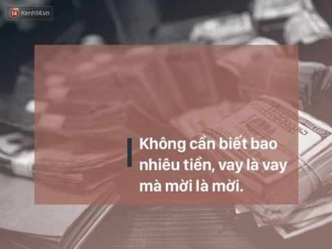 Nhất định phải chủ động trả lại tiền đã vay, đã hứa trả tiền thì khó khăn thế nào cũng phải trả lại. Không cần biết bao nhiêu tiền, vay là vay mà mời là mời. Tiền người ta kiếm được, người ta không có nghĩa vụ phải bố thí cho bạn, người ta không mở miệng đòi là người ta muốn giữ lại mặt mũi cho bạn mà thôi.