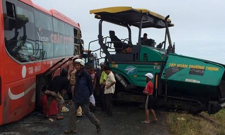 Vụ tai nạn xảy ra vào sáng sớm nay giữa một chiếc xe khách và xe rải thảm đường đã làm một người chết và nhiều người khác bị thương nặng.