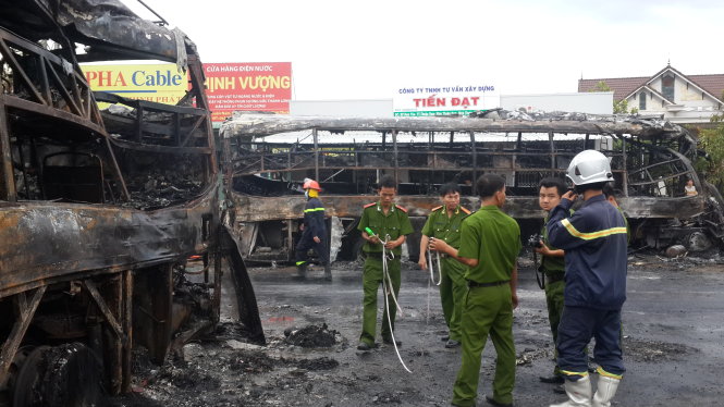 Sau cú va chạm kinh hoàng sáng 22-5, hai xe giường nằm chạy ngược chiều trên quốc lộ 1 đã bốc cháy khiến hầu hết 13 thi thể nạn nhân của vụ tai nạn không thể nhận dạng.