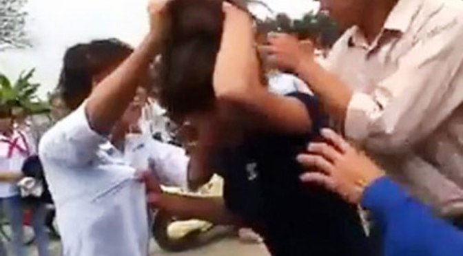 [4] Trong một clip dài hơn 4 phút ghi lại cảnh 2 nữ sinh vật lộn, đánh nhau giữa đường phố lúc trời mưa. Cả 2 thượng cẳng chân, hạ cẳng tay đấm đá nhau túi bụi, túm tóc đập đầu xuống đường. Điều đáng nói ở đây là ý thức và trách nhiệm của người xung quanh, thay vì can ngăn họ, lại khoanh tay đứng nhìn rất thản nhiên thích thú.