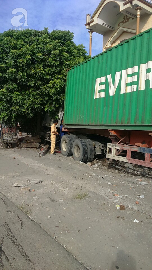 Theo quan sát PV, chiếc xe container trọng tải lớn đã bị hư hỏng toàn phần đầu sau khi làm ảnh hưởng khoảng 5 nhà ven đường quốc lộ rồi dừng lại tại một gốc cây và chiếc cột bê tông. Rất may sự việc không gây thiệt hại về người.