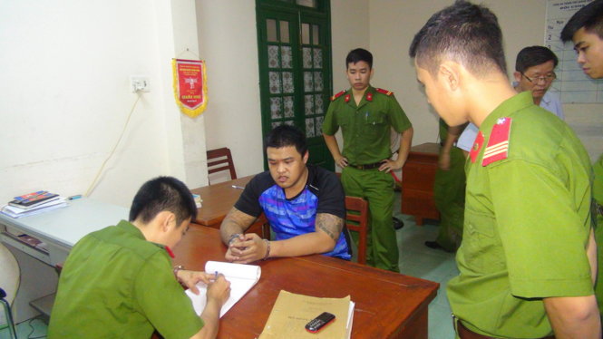 Một đối tượng người Bình Định đang được công an tỉnh Quảng Ngãi lấy lời khai