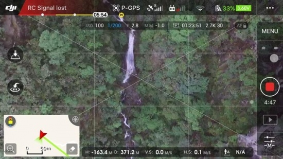 Trong khoảng hơn 30 phút bay quanh khu vực điểm cuối có nhiều vực sâu và hố lớn cộng với sức gió mạnh, mây mù ít nhất 2 flycam đã suýt rơi, bay hạ cánh trong điều kiện mù đặc và mưa nhỏ. Lúc này nhóm 1 chia thêm một nhóm xuống thực địa, flycam sẽ dẫn hướng bên trên nhưng do mây mù quá đặc nên phải rút về để nhóm 3 tự men theo núi.