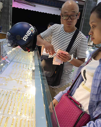 Một hướng dẫn viên du lịch Trung Quốc sử dụng đồng nhân dân tệ để mua hàng hóa. Ảnh: Hướng dẫn viên du lịch tiếng Trung cung cấp.
