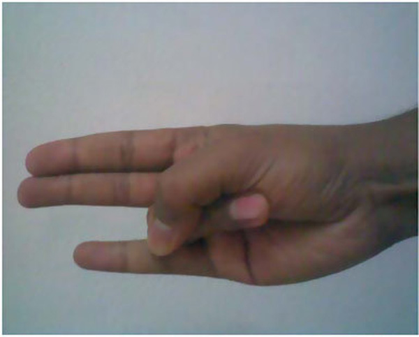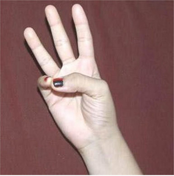 Để thực hiện được động tác này rất đơn giản, bạn chỉ việc gập ngón áp út lại rồi dùng ngón tay cái nhấn vào đốt thứ hai của ngón áp út.
