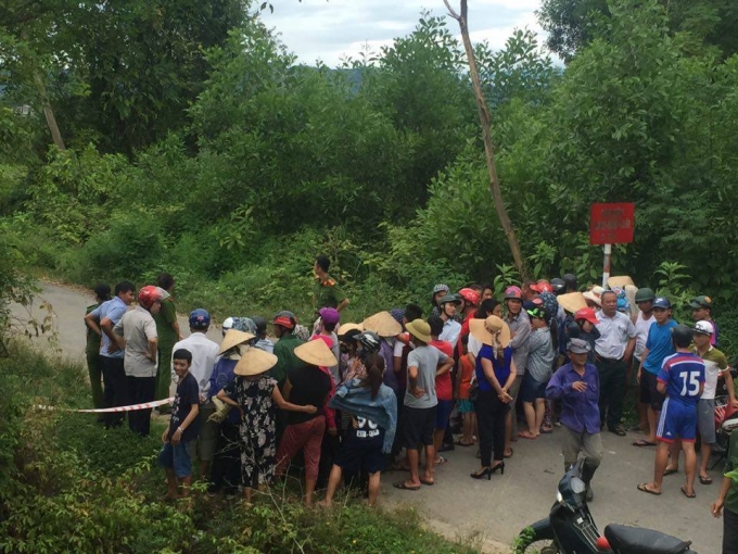 Rất đông người dân tụ tập trong khu vực cầu Sú (thị trấn Thạch Hà) để chứng kiến cảnh cơ quan chức năng tìm kiếm xác nạn nhân.