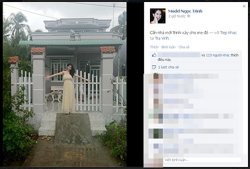 Đi kèm ḍng chia sẻ này là h́nh ảnh nội thất và toàn cảnh ngôi nhà của chị gái Ngọc Trinh. Căn nhà được thiết kế hiện đại và được trang bị những tiện nghi sinh hoạt đắt tiền. Trước đó, Ngọc Trinh cũng đă tự tay xây nhà cho mẹ kế và lo toán cuộc sống cho các anh chị của ḿnh tới nơi, tới chốn.