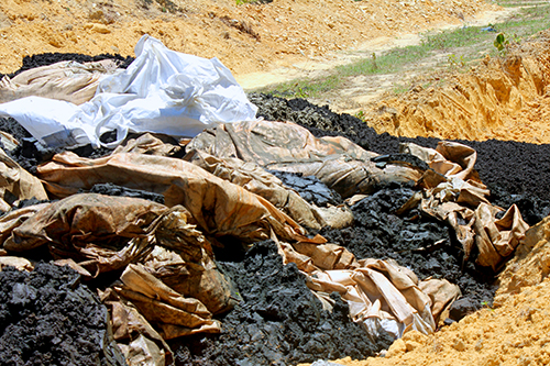 Cơ quan chức năng phát hiện khoảng 100 tấn chất thải của Formosa chôn lấp trái phép. Ảnh: Tân Kỳ.