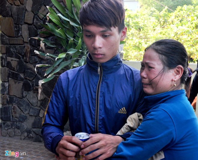 Bà Năng òa khóc ôm con trai Võ Văn Cầu(17 tuổi) vừa thoát nạn từ vùng biển Hoàng Sa trở về. Ảnh: Minh Hoàng.