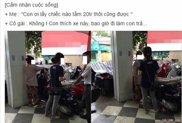 “Hôm đó, mình cùng mẹ đi mua xe máy. Mẹ không hề nói câu nào, hay bảo mình mua xe khoảng 20 triệu như câu chuyện trên mạng.