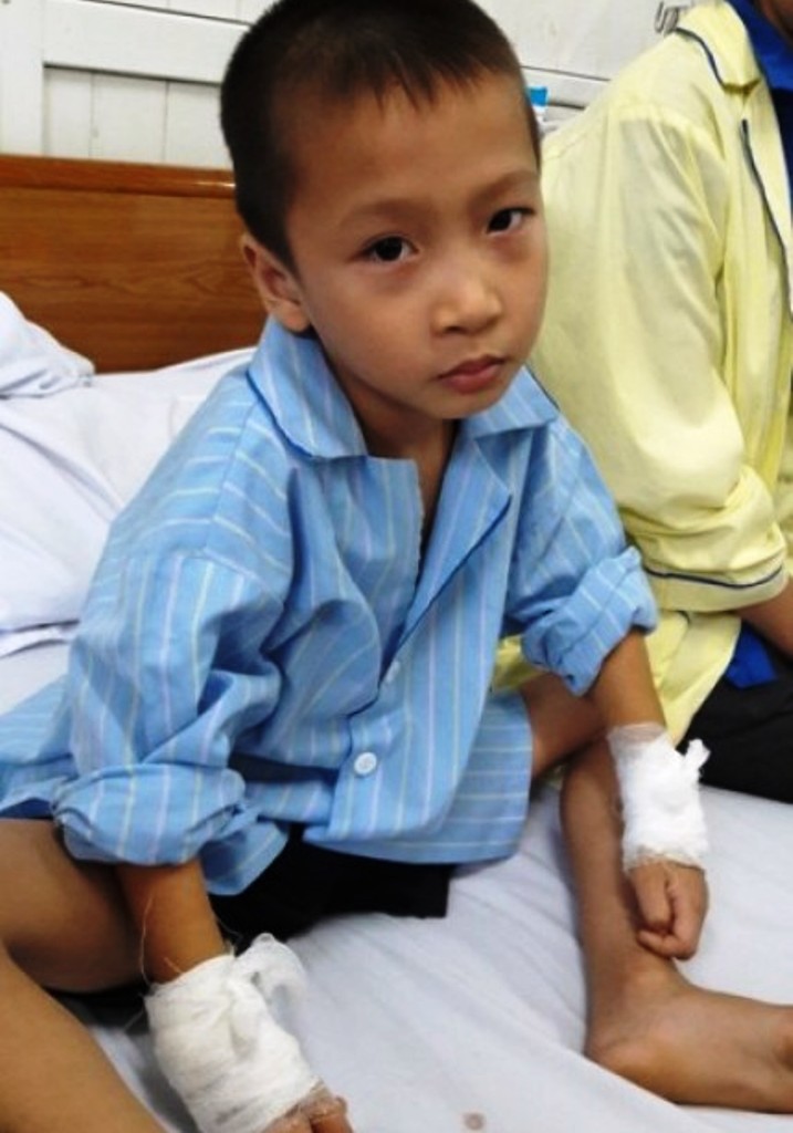 Trước đó, vào ngày 17/2/2016, cháu Phạm Thành Luân (6 tuổi, xóm 6, phường Đậu Liêu, thị xã Hồng Lĩnh, tỉnh Hà Tĩnh) bị ngã gãy tay, và được đóng đinh cố định tại Bệnh viện 115 Nghệ An.