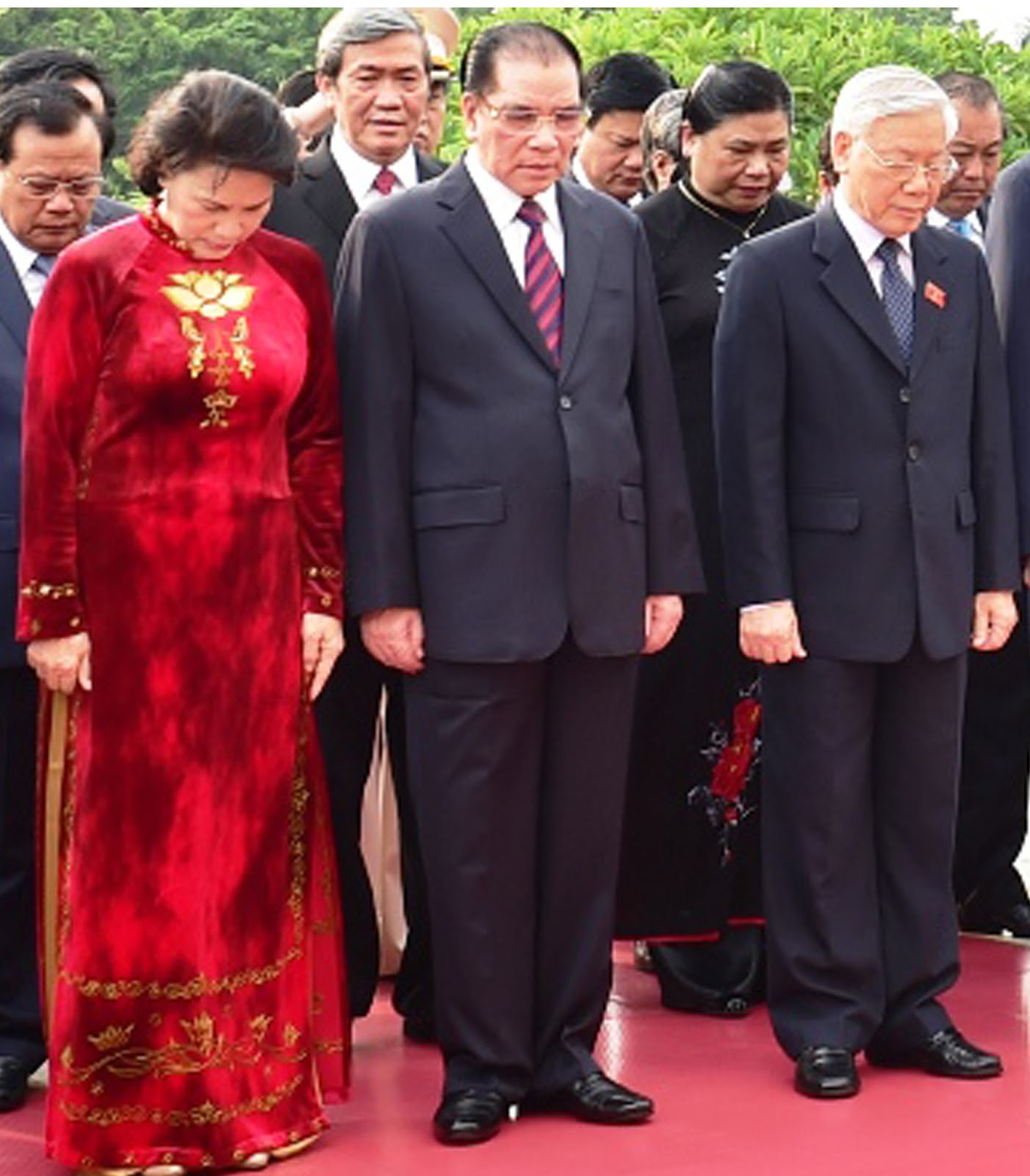 Chủ tịch Nguyễn Thị Kim Ngân xuất hiện trong trang phục áo dài nhân ngày kỷ niệm 69 năm ngày thương binh liệt sĩ.Bà đã gửi mọi nỗi niềm,tình cảm đau thương vào chính bộ trang phục áo dài đỏ lộng lẫy này.Đứng giữa các vị lãnh đạo cấp cao cộng sản Việt nam.