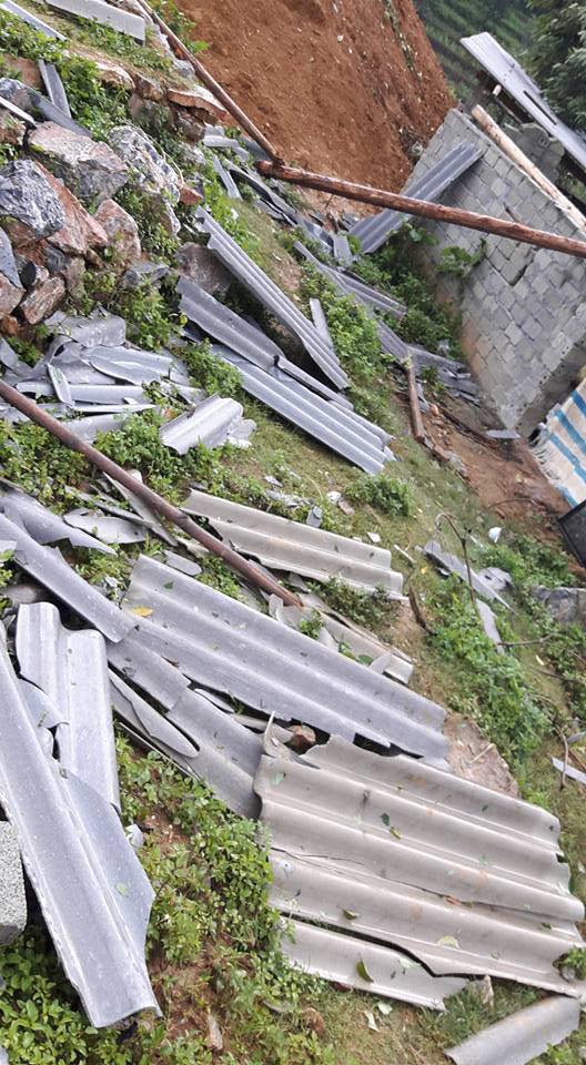 Gió giật mạnh khiến 2 nhà bị sập đổ và 1 nhà bị tốc mái hoàn toàn, có 2 nhà gỗ bị gió lốc đẩy xiêu vẹo nguy cơ bị đổ, 11 nhà bị tốc mái trên 50%. Gió mạnh càn lướt làm gãy đổ 5ha ngô ở huyện Si Ma Cai, gây hư hại nhiều diện tích hoa màu khác…