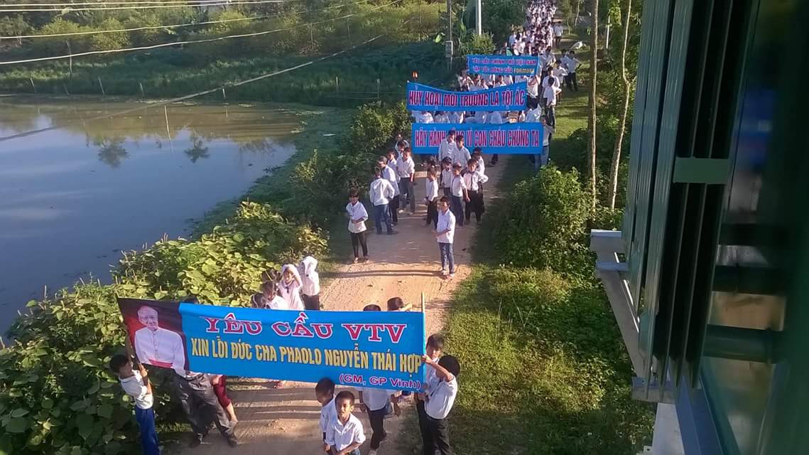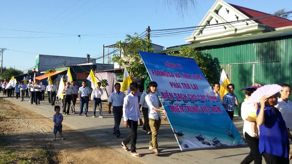 Sáng chủ nhật 7.8, có khoảng 5.000 người của các giáo xứ Song Ngọc, Phú Yên, Ngọc Long, Đông Yên, Mành Sơn, Xuân Kiều...vv thuộc giáo phận Vinh (Nghệ An) đã xuống đường ôn hòa; với các khẩu hiệu yêu cầu đóng cửa và truy cứu trách nhiệm pháp lý đối với Formosa. Đồng thời đòi VTV xin lỗi Đức giám mục chánh tòa Giáo phận Vinh - Cha Phaolô Nguyễn Thái Hợp. (Trong một bản tin hồi tháng 5.2016, đài truyền hình quốc gia đã cáo buộc ông kích động giáo dân chống chính quyền khi kêu gọi người dân và chính phủ tìm nguyên nhân cá chết).