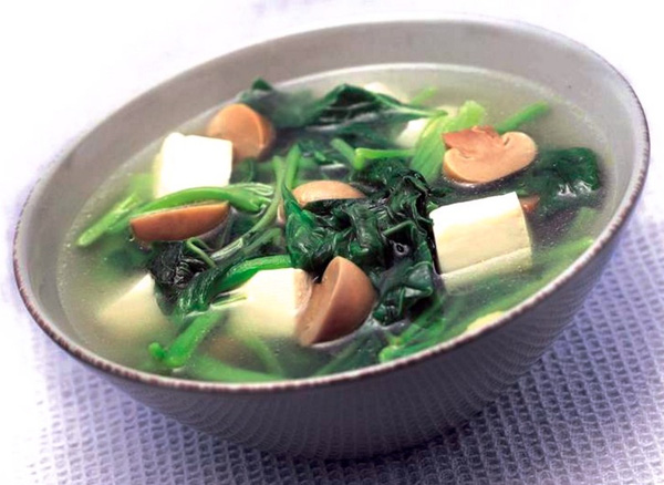 Nguyên do là trong đậu hũ chứa magnesium chloride, calcium sulfate, còn trong rau chân vịt lại chứa acid oxalic, hai chất này gặp nhau sẽ tạo thành magnesium oxalate và calcium oxalate một chất kết tủa màu trắng, ngăn chặn cơ thể hấp thụ canxi và tăng cường các triệu chứng sỏi mật.