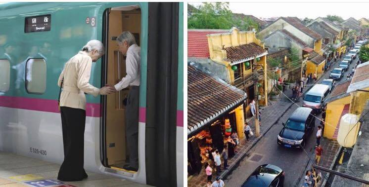 Nhật Bản: Nhật hoàng Akihito dắt tay Hoàng hậu lên tàu lửa công cộng, về địa phương thăm dân.