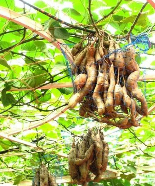 Thay vì trồng khoai lang dưới đất như bình thường, người ở đây họ nghĩ ra ý tưởng trồng khoai bằng cách treo chúng lên không trung.