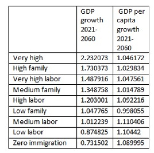 The report says the zero migration option grows per-capita income by 1.089 in the 35 years up to 2060.