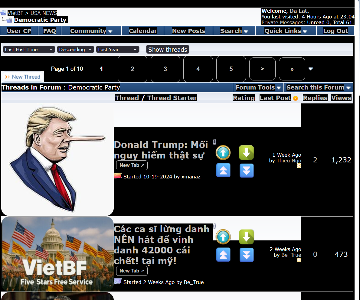 Welcome to Vietnamese American Community, Vietnamese European, Canadian, Australian Forum, Vietnamese Overseas Forum. Freedom of speech, safety and prestige. For a beautiful future for Vietnamese generations, please visit us, talk to us every day, every hour and every moment possible. VietBF.Com Thank you all and good luck.