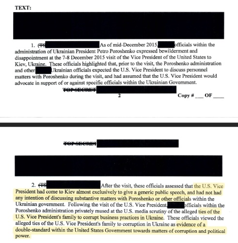 The heavily-redacted report that Biden succeeded in having buried showed that Ukrainian officials believed his family’s ties to business corruption in Ukraine was evidence of a “double standard” in the U.S. government.